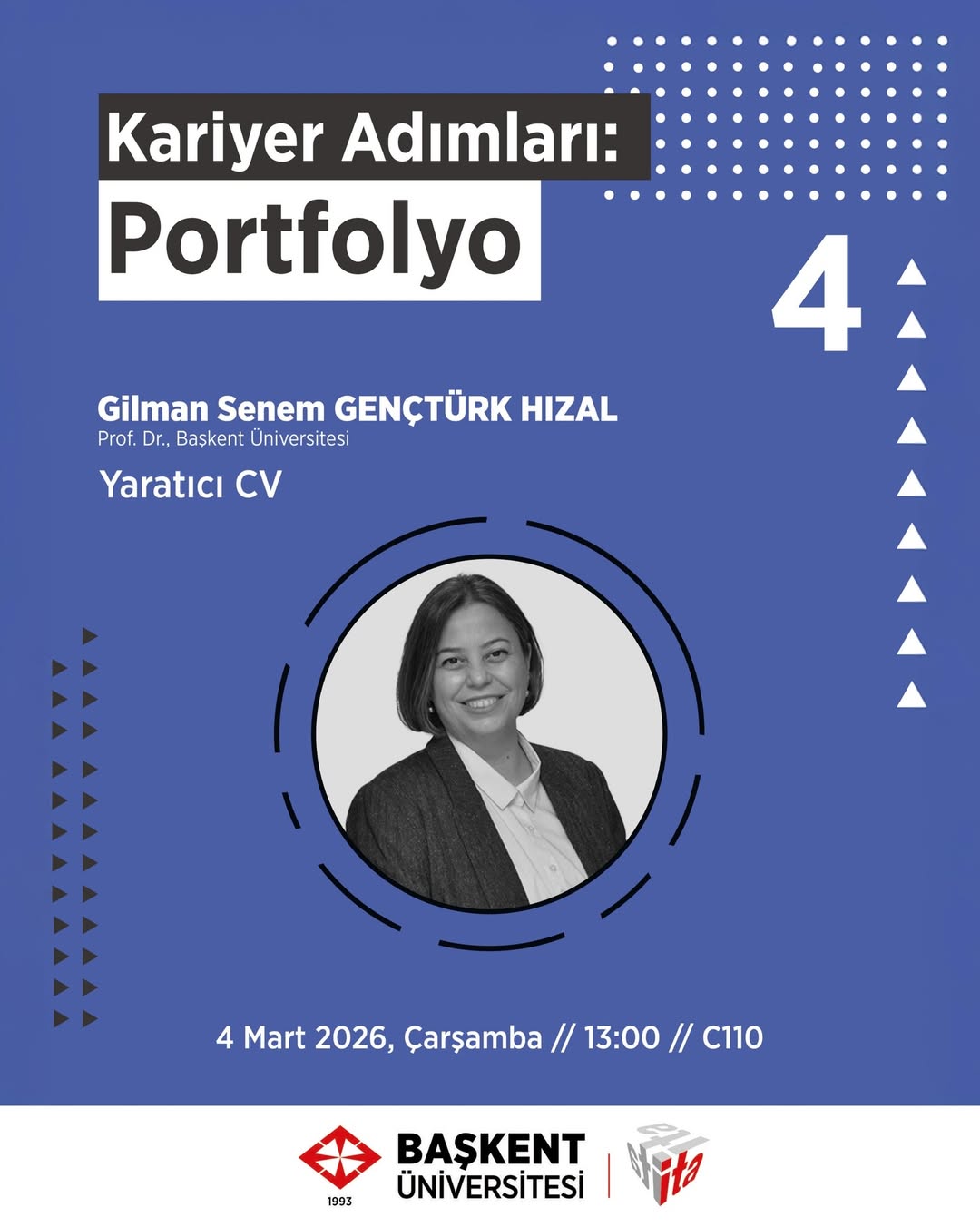 Dekanımız Prof. Dr. G. Senem Gençtürk Hızal, “Kariyer Adımları: Portfolyo” etkinliği kapsamında 4 Mart Çarşamba günü saat 13.00’da C110’da sizlerle buluşuyor!